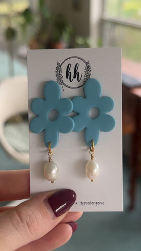 Flower Stud with Dangle Bead/Pearl- Multiple Colorways!